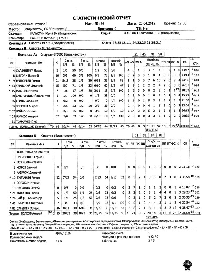 Чемпионат Приморского края. «Спартак-ВГУЭС» (Приморский край) – «Спартак» (Владивосток) 98:85 (21:11, 24:22, 25:21, 28:31)