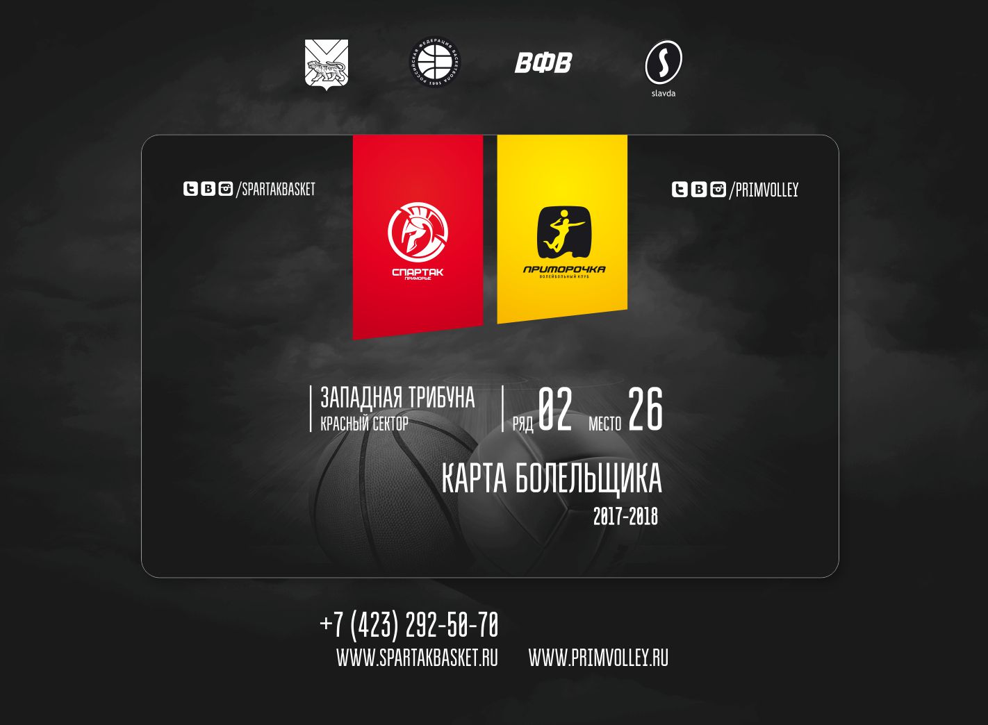 Абонементы продаются на лучшие центральные места в зале и действуют на все домашние матчи баскетбольного клуба «Спартак-Приморье» в Суперлиге и Кубке России и волейбольного клуба «Приморочка» в Высшей лиге «А».